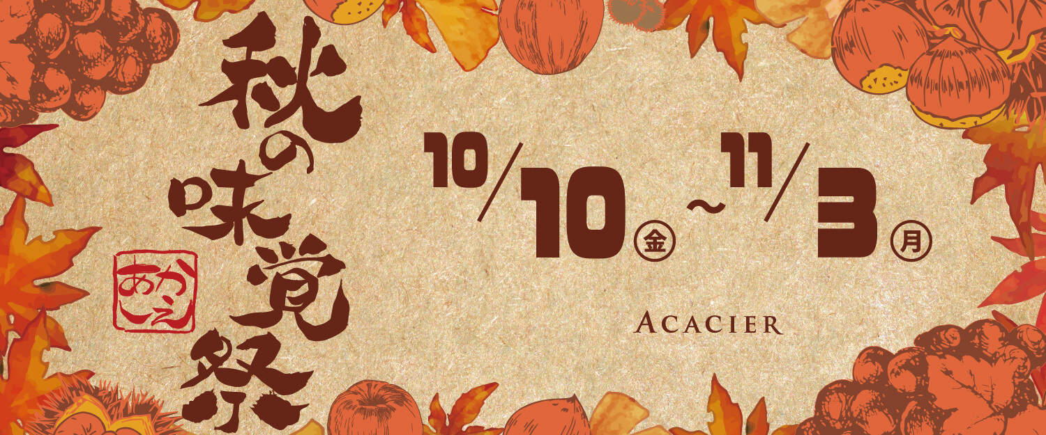 まだまだ暑い日もありますが、ようやく秋を感じる季節になりましたね。 そんな中アカシエでは、様々な秋の味覚をおいしいお菓子にして、今年も「秋の味覚祭」を開催いたします🌰 この季節ならではの素材を活かしたスイーツの数々を、ど…