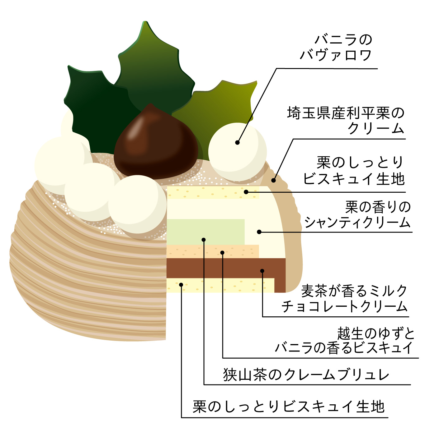 埼玉県産の栗の高級品種 ”利平栗” を使用したクリームの中に閉じ込められているのは、特選狭山茶のクレームブリュレ。越生の桂木ゆずがほんのり香ります。地元埼玉の秀逸な厳選素材がマリアージュする、アカシエならではのとっておきのモンブランをぜひ味わってみてください。